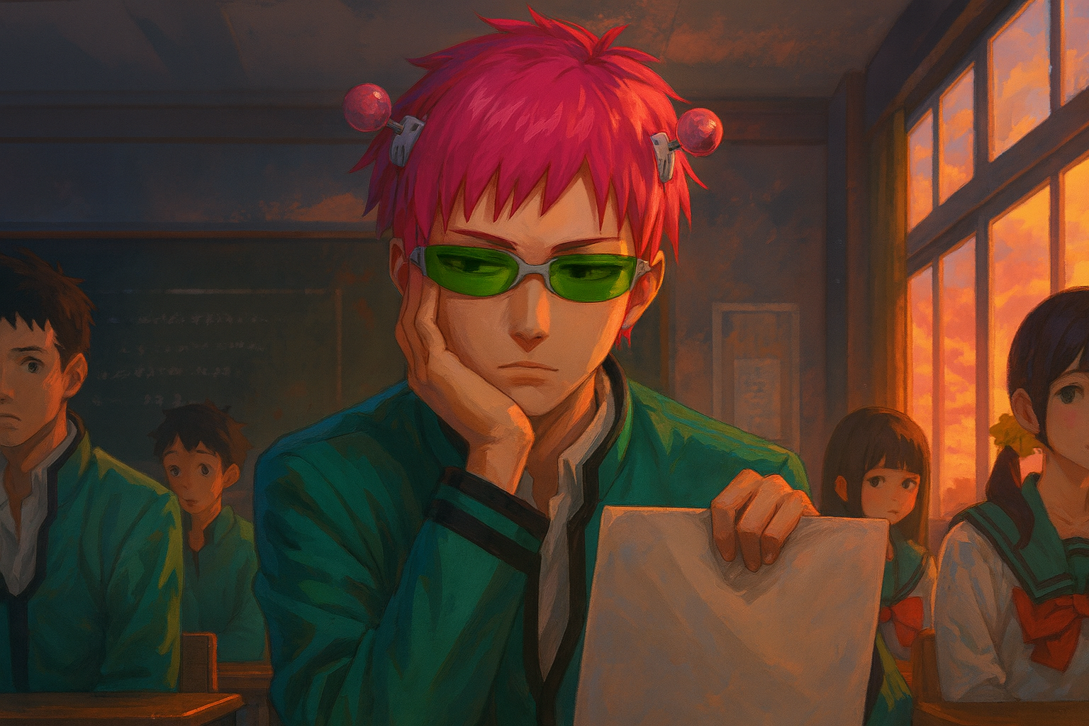 超能力者の斉木楠雄が、テレパシーや念力、透視といった能力を日常で使いながらも「目立ちたくない」という一点で生きている姿。